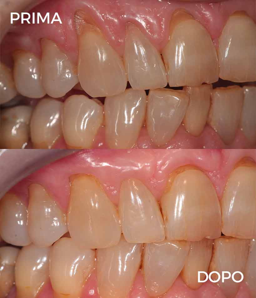 Attraverso un unico intervento di chirurgia mucogengivale correttiva, è stato possibile trattare in modo mirato tutte le recessioni, migliorando la protezione dei denti e ristabilendo l’equilibrio dei tessuti gengivali.